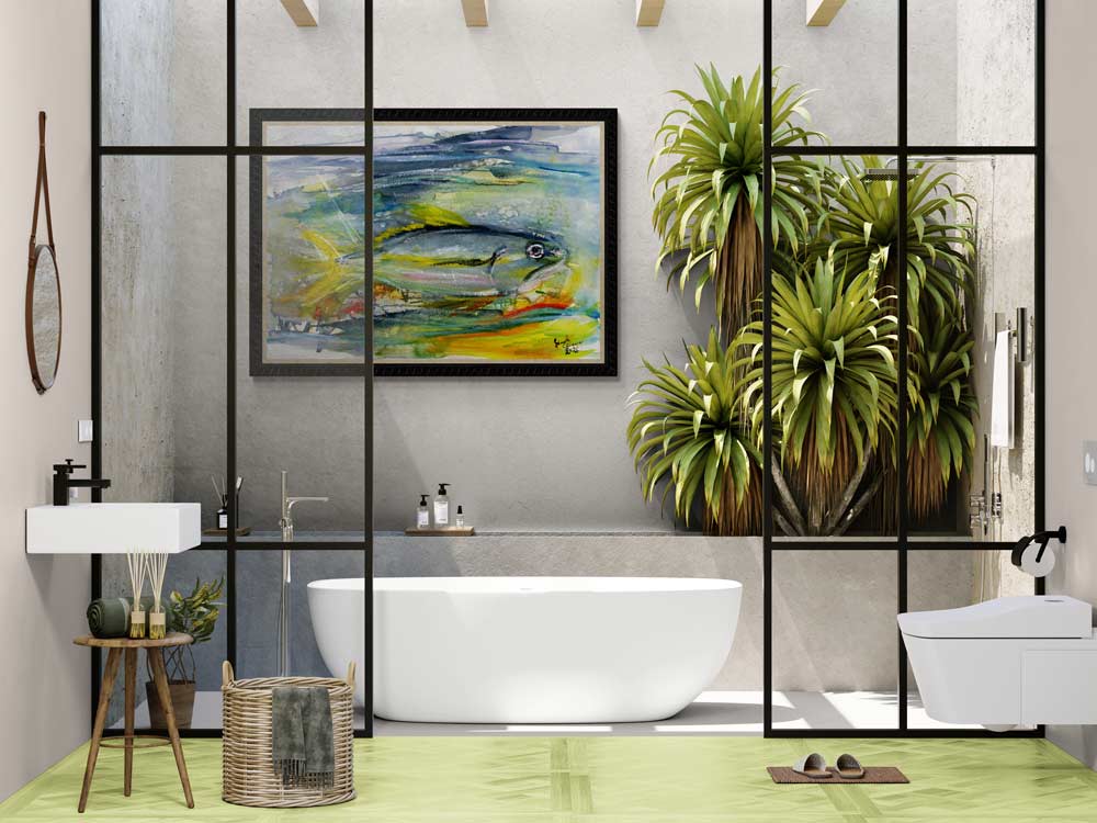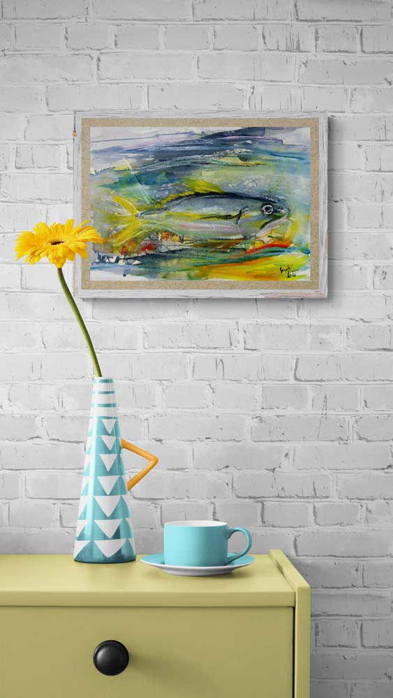 Abstract Expressive Yellowtail Tuna Watercolors and Oil Sticks from my preferred vendor that has done my prints for many years to everyone’s satisfaction. A 30 day return guarantee comes with it.