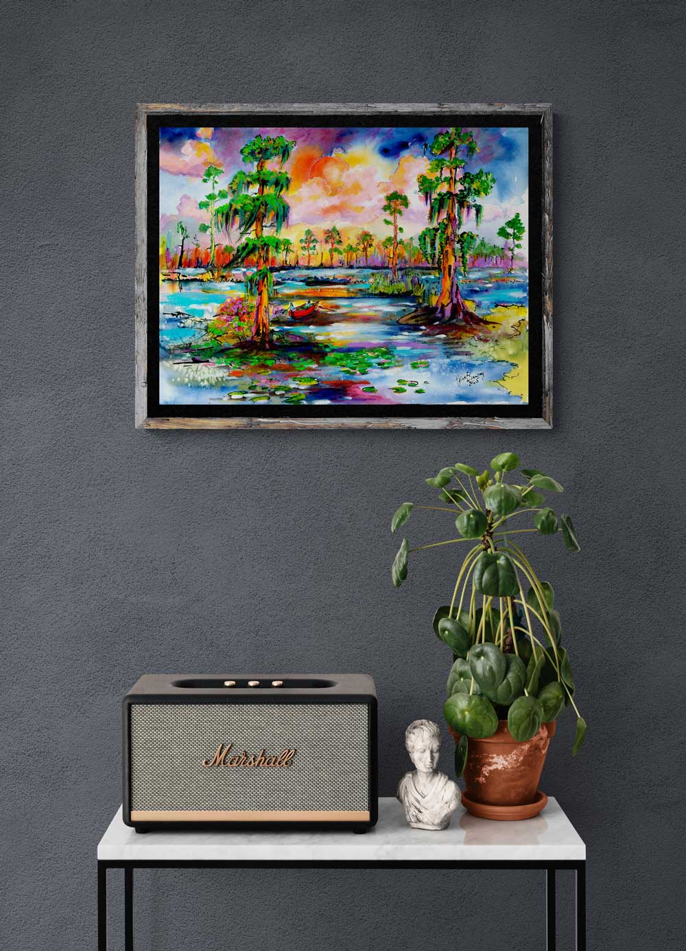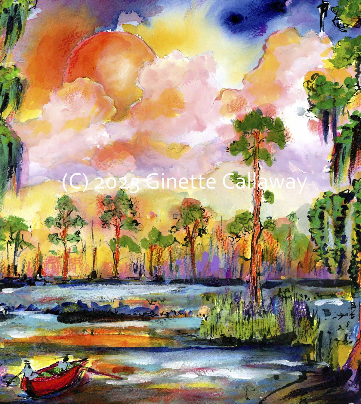Consider a fine art print of Florida Wetland Sunset Vibrant Watercolors. You can even get it printed on real watercolor paper, or canvas if you prefer. Here is a link .